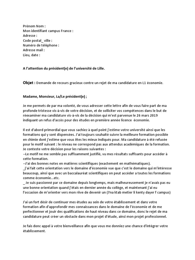 Procédure campus france projet détudes et lettres de motivation tutoriel n3. Les conseils de rédaction, les parties à inclure, et les astuces d'une bonne lettre. Nom, prénom adresse téléphone email. Toute candidature à un poste s'accompagne d'un curriculum vitae et d'une lettre de motivation. Les universités françaises comme sorbonne université sont ouvertes aux étudiants étrangers, y compris ceux vivant hors de l'espace economique européen (eee) et hors programme d'échange international comme erasmus mundus.